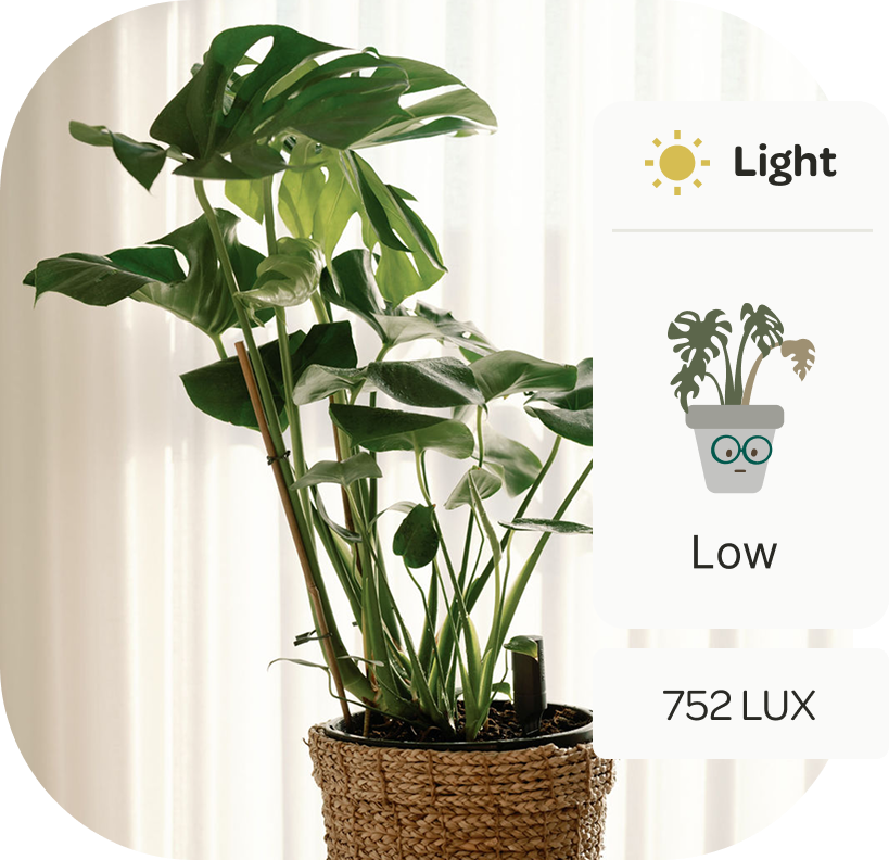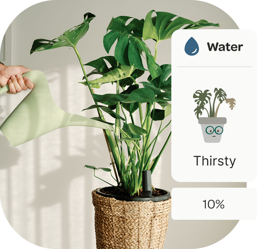 Keep tabs on your plant’s well-being from anytime and anywhere! The plant happiness score updates hourly in the app, tracking your plant’s comfort levels across light, water, humidity and temperature.